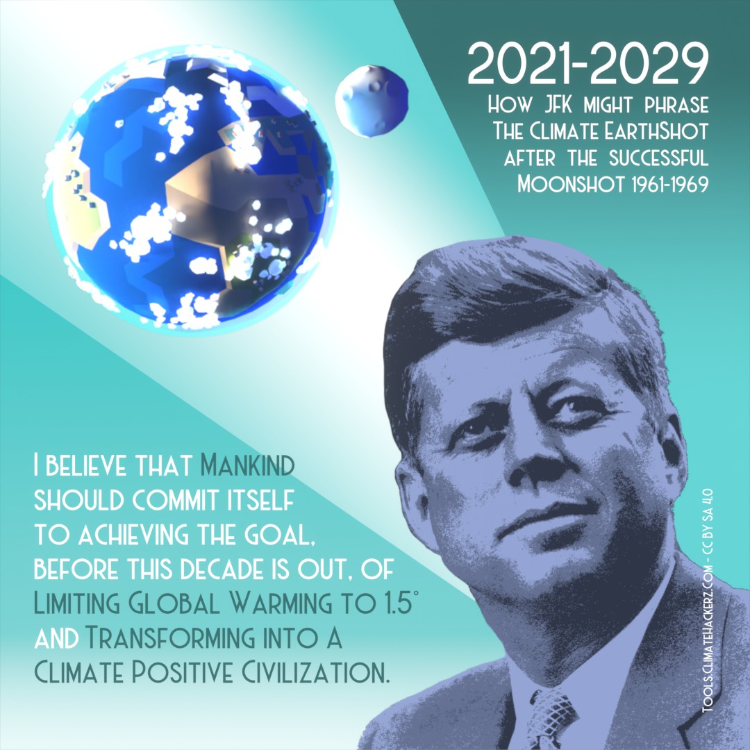 If John F.Kennedy would still be around and also would see the climate crisis as a global challenge we need to address within a decade (which is what the numbers of scientists tell us crystal clearly) how would he rephrase his challenge for mankind to pick up and achieve the global transformation to climate positive within a decade?